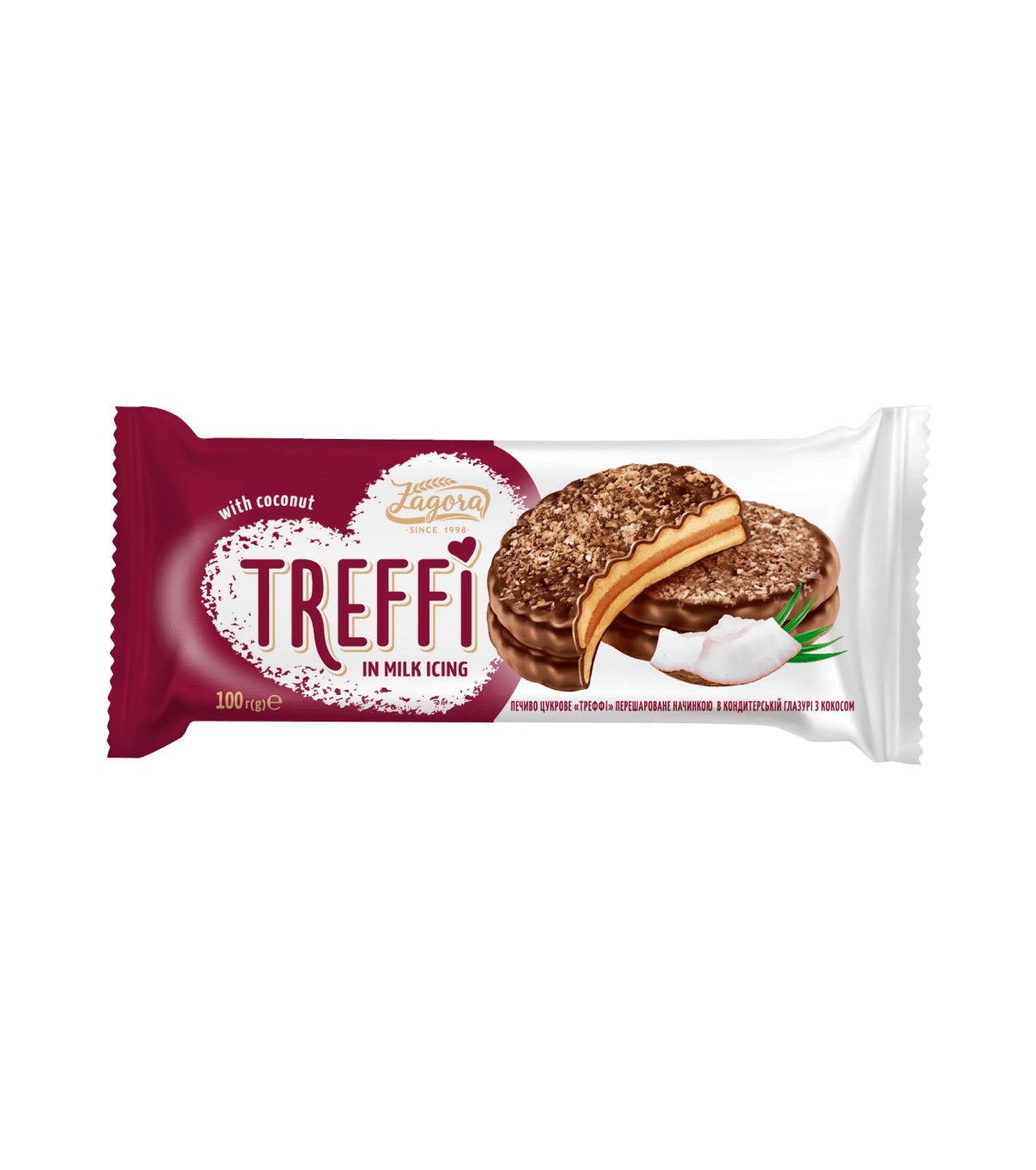 Борошно пшеничне, кондитерська глазур 35%, какао-порошок, молоко сухе, жир рослинний, цукрова пудра, сироватка молочна суха, стружка кокосового горіху 2%, сіль.