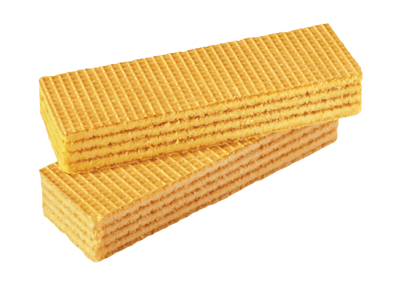 Cienkie, delikatne listki waflowe przeplatają się z delikatnym kremowym nadzieniem, tworząc wielowarstwową strukturę. Nadzienie dodaje łagodnego kontrastu smakowego i dobrze komponuje się z chrupiącymi waflami.
