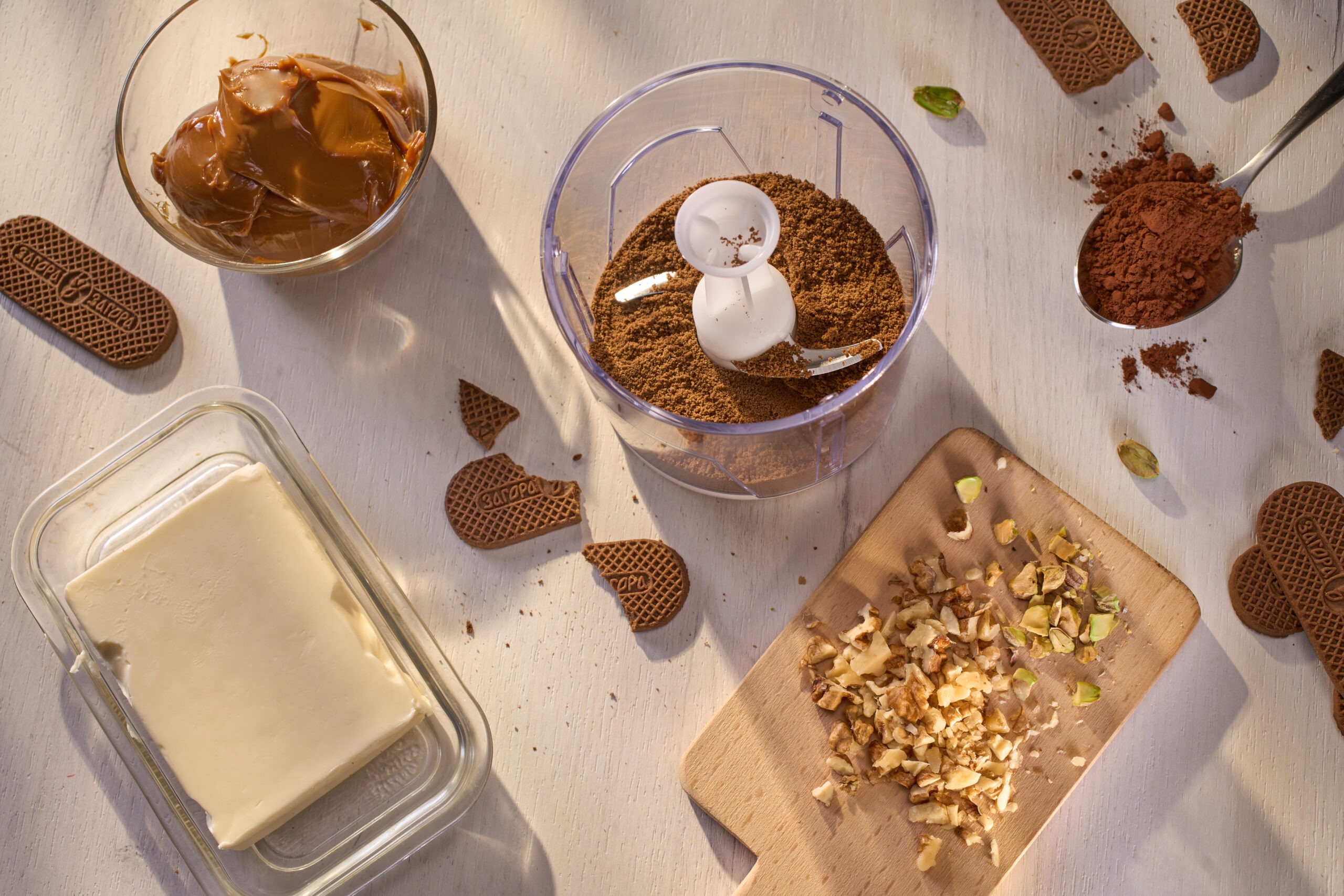 Додайте до крему горіхи та печиво, добре вимішайте.